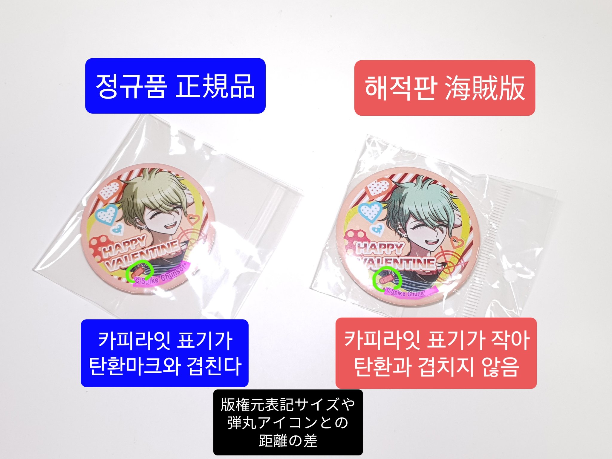 해적판은 눈꽃모양 하얀 테두리부분이 거의 캔뱃지 가장자리까지 있습니다